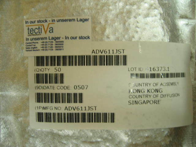 This component ADV611JST from manufacturer Analog Devices with date code 04+ can be shipped directly from the Sonnenbuehl warehouse in Germany. Make an RFQ today - we are looking forward to offer you the component ADV611JST. Tectiva Germany is your partner for excess inventory, allocation parts EOL parts and special procurement of electronic components. Let's do it! Click here to request the ADV611JST. |
