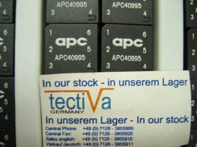 This component APC40995 from manufacturer APC with date code 98+ can be shipped directly from the Sonnenbuehl warehouse in Germany. Make an RFQ today - we are looking forward to offer you the component APC40995. Tectiva Germany is your partner for excess inventory, allocation parts EOL parts and special procurement of electronic components. Let's do it! Click here to request the APC40995. |