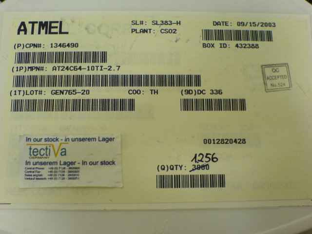 This component AT24C64-10TI-2.7 from manufacturer ATMEL with date code 03+ can be shipped directly from the Sonnenbuehl warehouse in Germany. Make an RFQ today - we are looking forward to offer you the component AT24C64-10TI-2.7. Tectiva Germany is your partner for excess inventory, allocation parts EOL parts and special procurement of electronic components. Let's do it! Click here to request the AT24C64-10TI-2.7. |