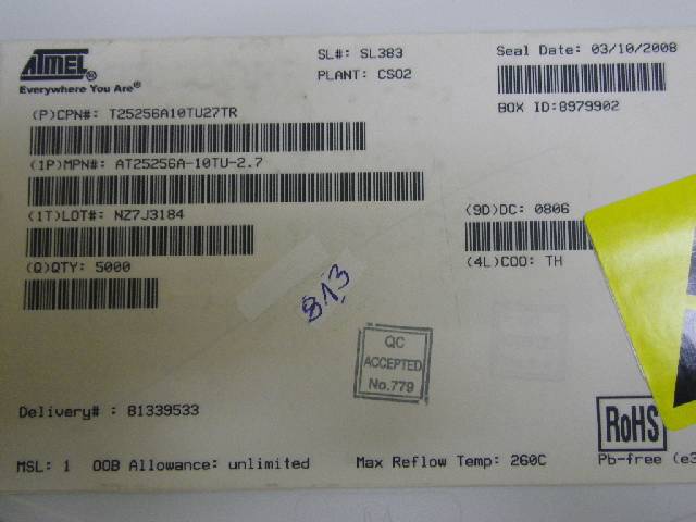 This component AT25256A-10TU-2.7 from manufacturer ATMEL with date code 08+ can be shipped directly from the Sonnenbuehl warehouse in Germany. Make an RFQ today - we are looking forward to offer you the component AT25256A-10TU-2.7. Tectiva Germany is your partner for excess inventory, allocation parts EOL parts and special procurement of electronic components. Let's do it! Click here to request the AT25256A-10TU-2.7. |