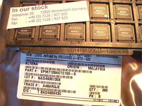 This component EPM7128AETC100-5 from manufacturer ALT with date code 00+ can be shipped directly from the Sonnenbuehl warehouse in Germany. Make an RFQ today - we are looking forward to offer you the component EPM7128AETC100-5. Tectiva Germany is your partner for excess inventory, allocation parts EOL parts and special procurement of electronic components. Let's do it! Click here to request the EPM7128AETC100-5. |
