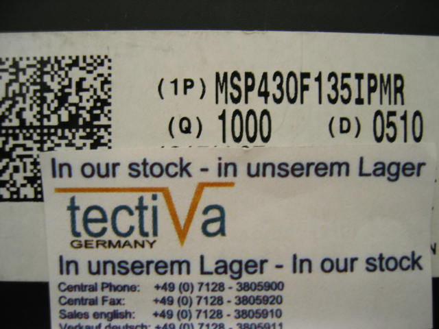 This component MSP430F135IPMR from manufacturer TI with date code 05+ can be shipped directly from the Sonnenbuehl warehouse in Germany. Make an RFQ today - we are looking forward to offer you the component MSP430F135IPMR. Tectiva Germany is your partner for excess inventory, allocation parts EOL parts and special procurement of electronic components. Let's do it! Click here to request the MSP430F135IPMR. |