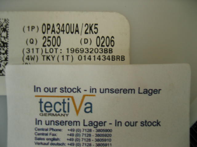This component OPA340UA from manufacturer Texas Instruments with date code 02+ can be shipped directly from the Sonnenbuehl warehouse in Germany. Make an RFQ today - we are looking forward to offer you the component OPA340UA. Tectiva Germany is your partner for excess inventory, allocation parts EOL parts and special procurement of electronic components. Let's do it! Click here to request the OPA340UA. |