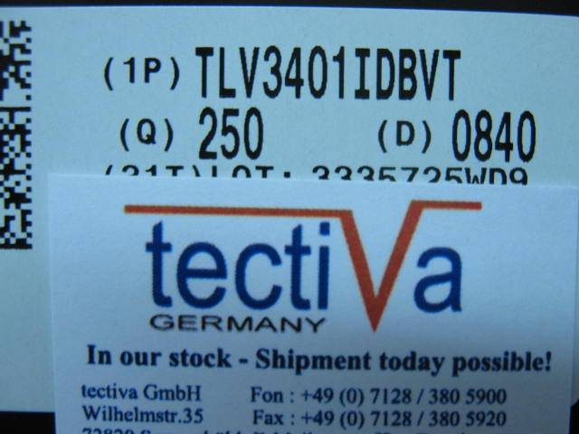 This component TLV3401IDBVT from manufacturer TI with date code 08+ can be shipped directly from the Sonnenbuehl warehouse in Germany. Make an RFQ today - we are looking forward to offer you the component TLV3401IDBVT. Tectiva Germany is your partner for excess inventory, allocation parts EOL parts and special procurement of electronic components. Let's do it! Click here to request the TLV3401IDBVT. |
