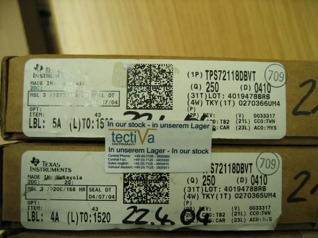 This component TPS72118DBVT from manufacturer TI with date code 04+ can be shipped directly from the Sonnenbuehl warehouse in Germany. Make an RFQ today - we are looking forward to offer you the component TPS72118DBVT. Tectiva Germany is your partner for excess inventory, allocation parts EOL parts and special procurement of electronic components. Let's do it! Click here to request the TPS72118DBVT. |