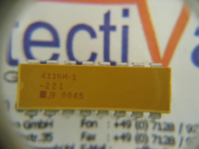 Dieses Bauteil 4116R-1-221 von Hersteller BOURNS mit Date Code 00+ ist direkt ab Lager Sonnenbühl Deutschland lieferbar. Fragen Sie heute an - wir freuen uns Ihnen das Bauteil 4116R-1-221 anbieten zu dürfen. Tectiva Germany ist Ihr Partner für Lagerüberbestände, Allokations Teile, EOL Teilen und Sonderbeschaffung bei elektronischen Bauteilen. Packen wir es an! Klicken Sie hier um den 4116R-1-221 anzufragen. |
