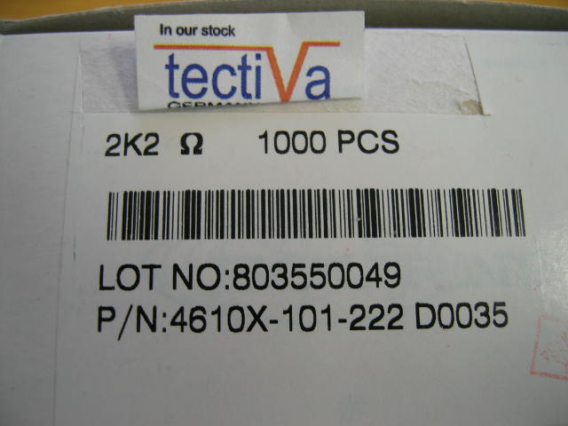 Das Bauteil 4610X-101-222 ist ein original Hersteller Teil. Das Bauelemet 4610X-101-222 ist neu und unbenutzt. Die RoHS und VPE Eigenschaften des 4610X-101-222 sind BOX. |