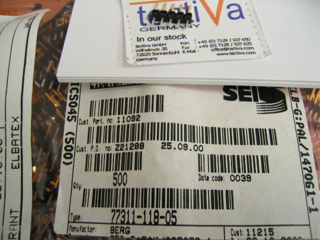 Dieses Bauteil 77311-118-05 von Hersteller FCI mit Date Code 00+ ist direkt ab Lager Sonnenbühl Deutschland lieferbar. Fragen Sie heute an - wir freuen uns Ihnen das Bauteil 77311-118-05 anbieten zu dürfen. Tectiva Germany ist Ihr Partner für Lagerüberbestände, Allokations Teile, EOL Teilen und Sonderbeschaffung bei elektronischen Bauteilen. Packen wir es an! Klicken Sie hier um den 77311-118-05 anzufragen. |