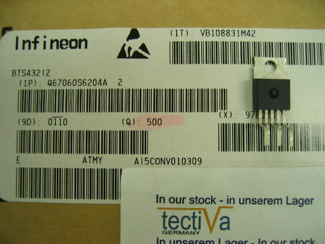 Das Bauteil BTS432I2 ist ein original Hersteller Teil. Das Bauelemet BTS432I2 ist neu und unbenutzt. Die RoHS und VPE Eigenschaften des BTS432I2 sind Power Switch. |