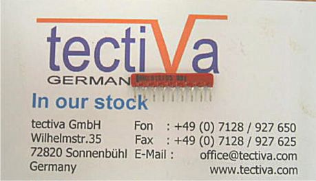 Die tectiva GmbH ist seit zwei Jahrzehnten als internationaler independent stocking Distributor tätig. Weit über 5.000 Kunden weltweit vertrauen uns. Sie erhalten bei uns nur original Ware aus zuverlässigen Quellen. |