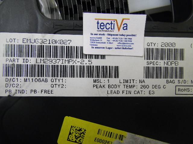 Dieses Bauteil LM2937IMPX-2.5 von Hersteller NSC mit Date Code 11+ ist direkt ab Lager Sonnenbühl Deutschland lieferbar. Fragen Sie heute an - wir freuen uns Ihnen das Bauteil LM2937IMPX-2.5 anbieten zu dürfen. Tectiva Germany ist Ihr Partner für Lagerüberbestände, Allokations Teile, EOL Teilen und Sonderbeschaffung bei elektronischen Bauteilen. Packen wir es an! Klicken Sie hier um den LM2937IMPX-2.5 anzufragen. |