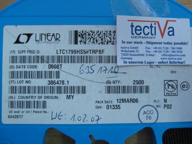 Dieses Bauteil LTC1799HS5-TRPBF von Hersteller LINEAR mit Date Code 06+ ist direkt ab Lager Sonnenbühl Deutschland lieferbar. Fragen Sie heute an - wir freuen uns Ihnen das Bauteil LTC1799HS5-TRPBF anbieten zu dürfen. Tectiva Germany ist Ihr Partner für Lagerüberbestände, Allokations Teile, EOL Teilen und Sonderbeschaffung bei elektronischen Bauteilen. Packen wir es an! Klicken Sie hier um den LTC1799HS5-TRPBF anzufragen. |
