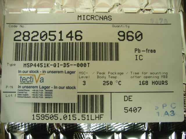 Das Bauteil MSP4451K-QI-D5-000T ist ein original Hersteller Teil. Das Bauelemet MSP4451K-QI-D5-000T ist neu und unbenutzt. Die RoHS und VPE Eigenschaften des MSP4451K-QI-D5-000T sind LEADFREE TRAY QFP64-2. |